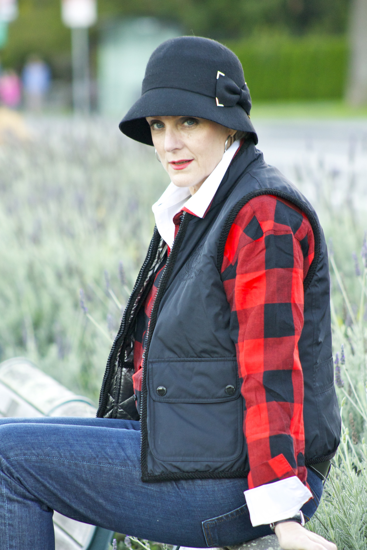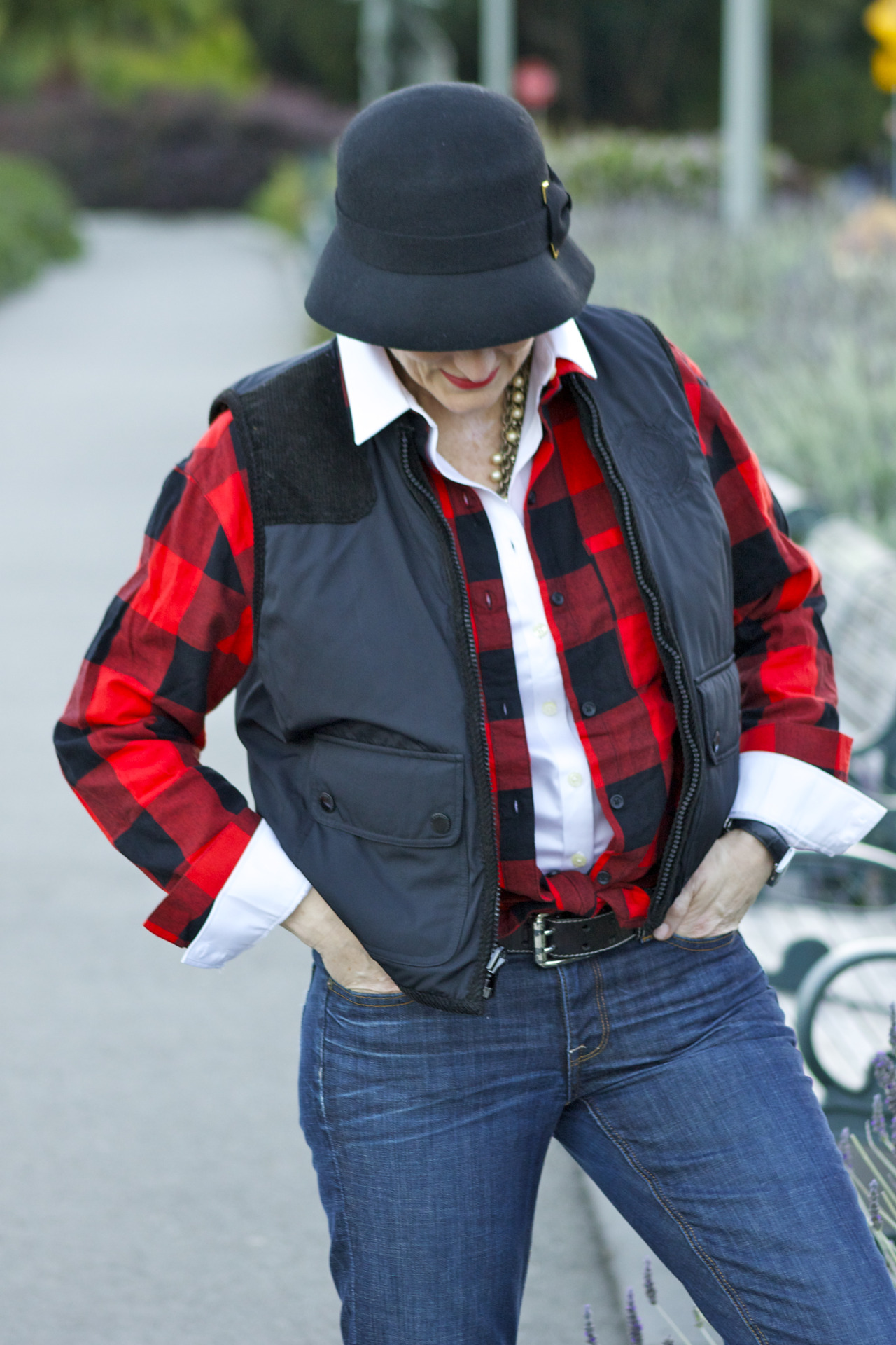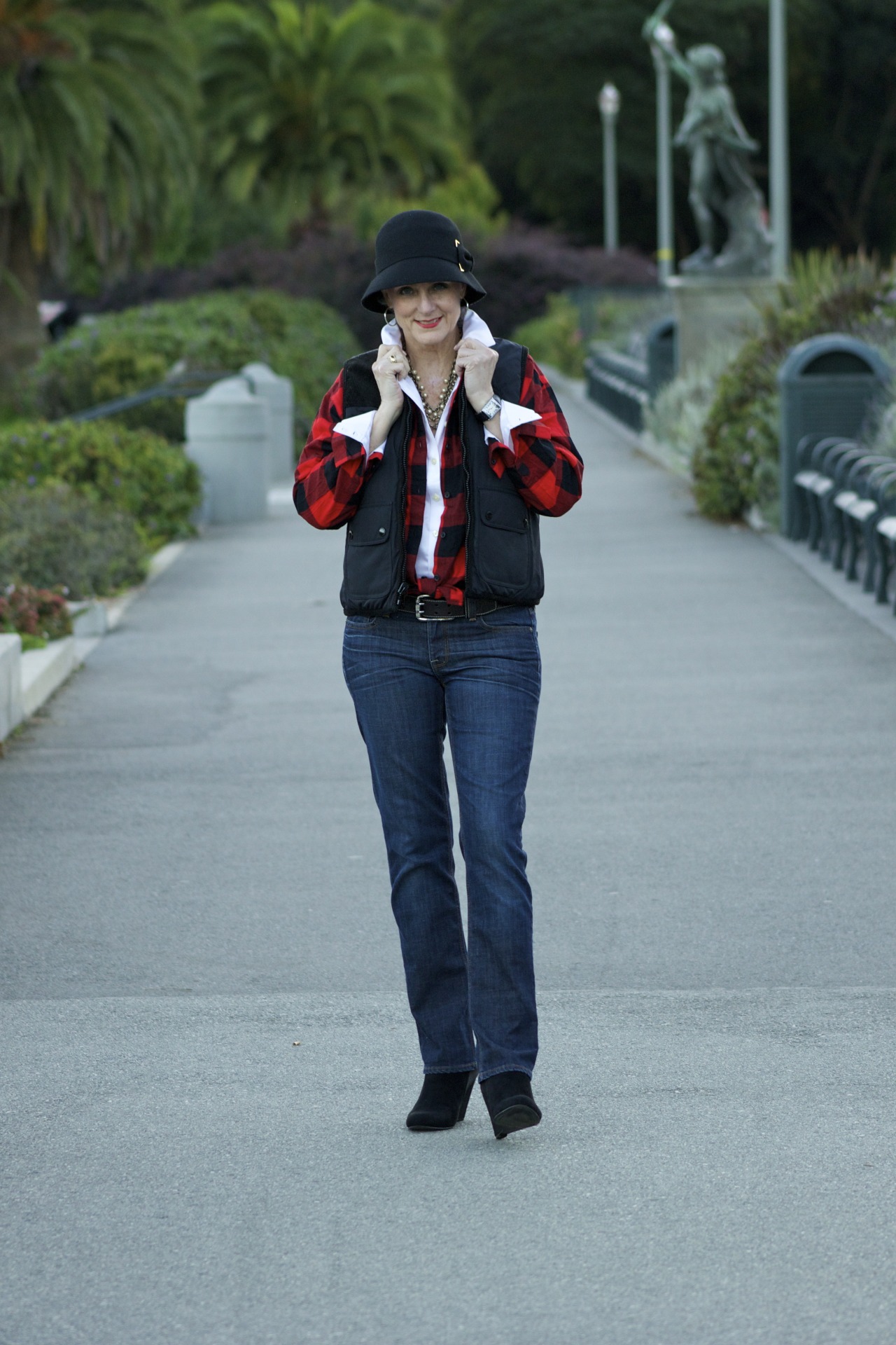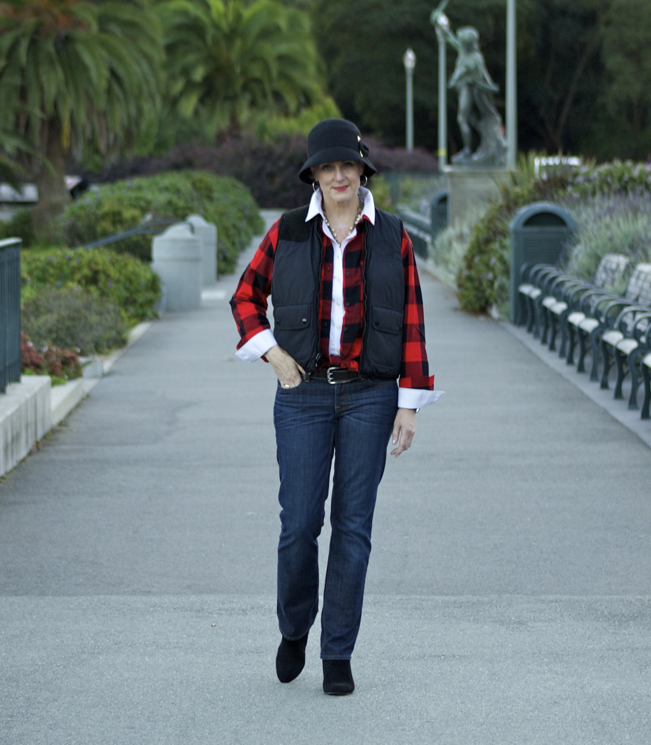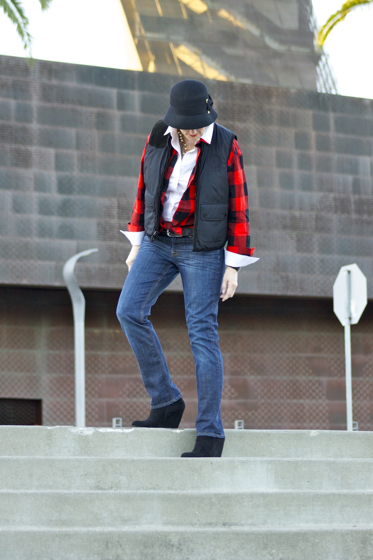 denim @JCrew; shirt @BananaRepublic; shirt @OldNavy; vest @RalphLauren; hat Merona @Target; belt @Express; booties @NineWest