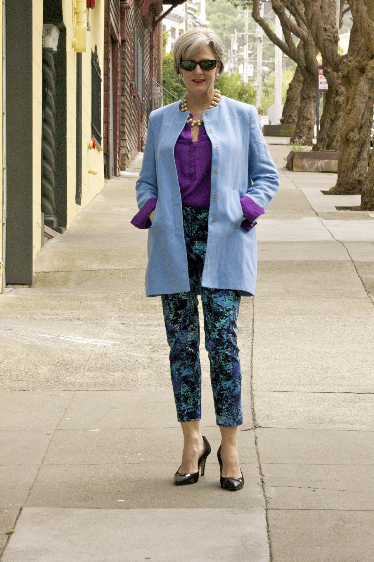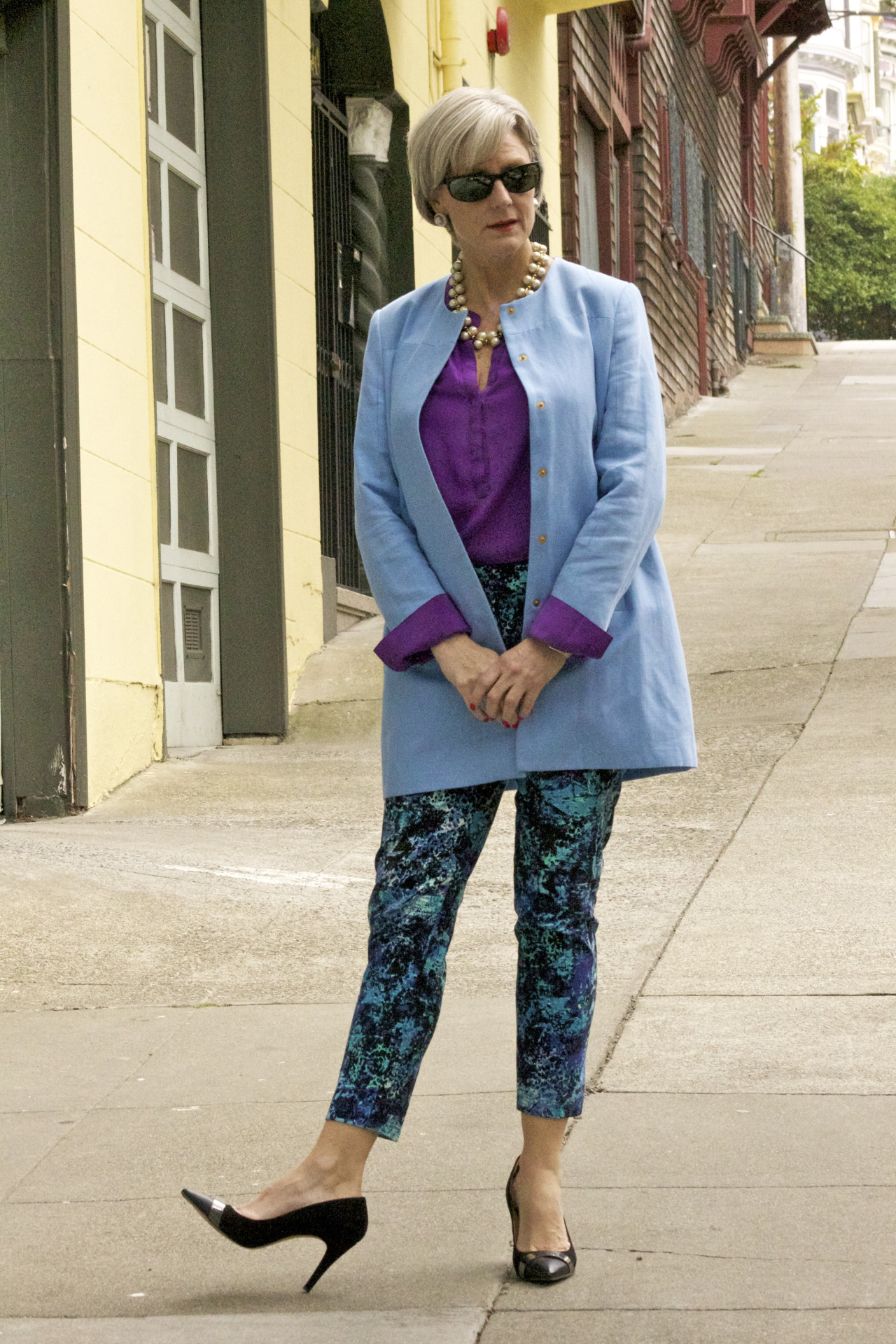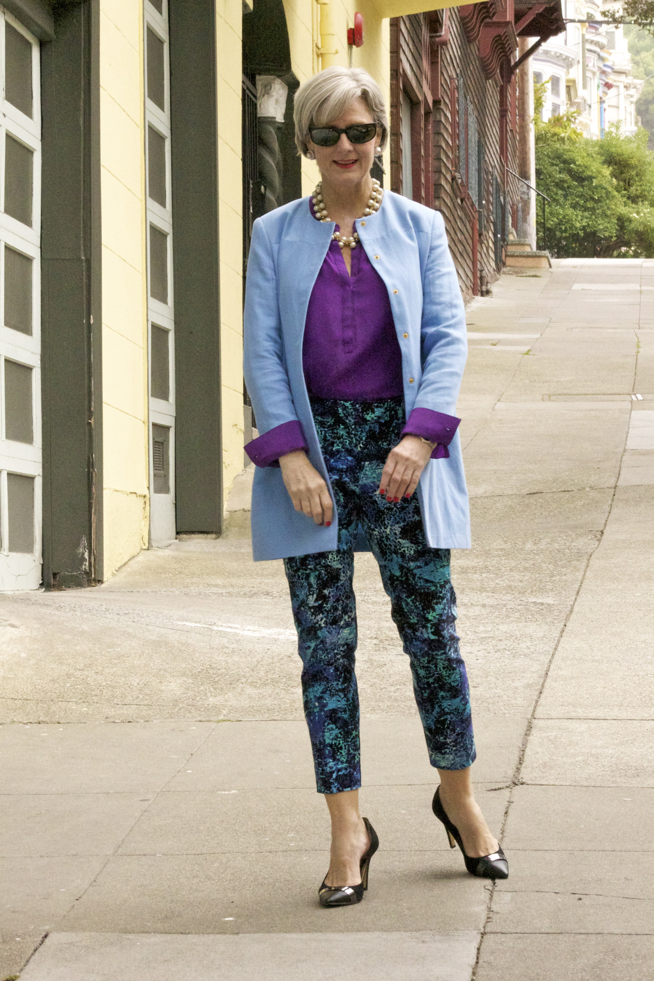 when monday morning arrives I love a pop of color. today i went with a color combination of purple and blue that was inspired by the print on the pants. toss in a black pair of pumps and I’m ready for the day.