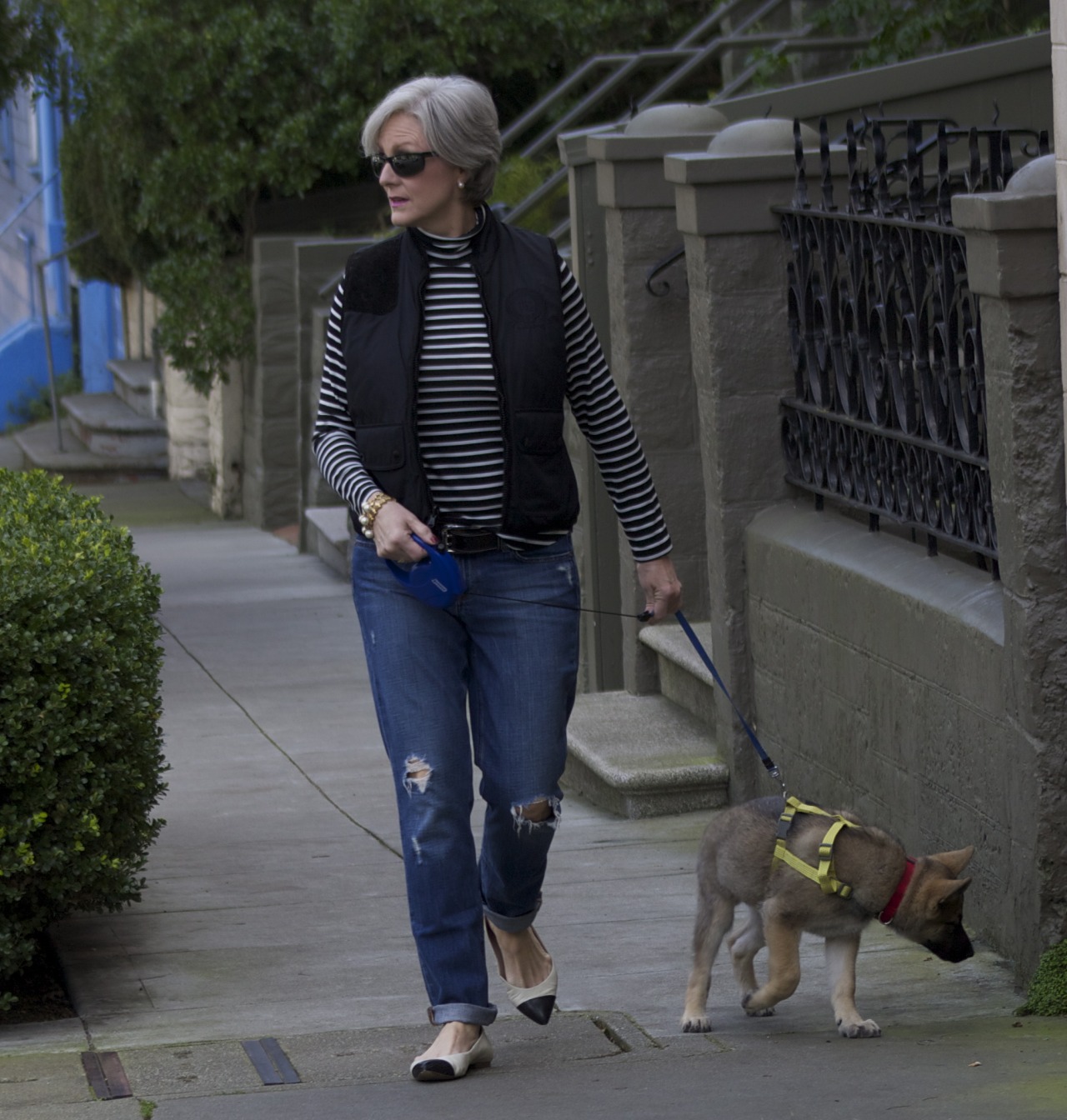 multiple outfits posted: pants (all 3) @JCrew; striped turtleneck @OldNavy; puffer vest @RalphLauren; scarf @BananaRepublic; tee @Madewell; blazer @JCrew; flats @BananaRepublic; sneaks @Converse; sandals @Ninewest