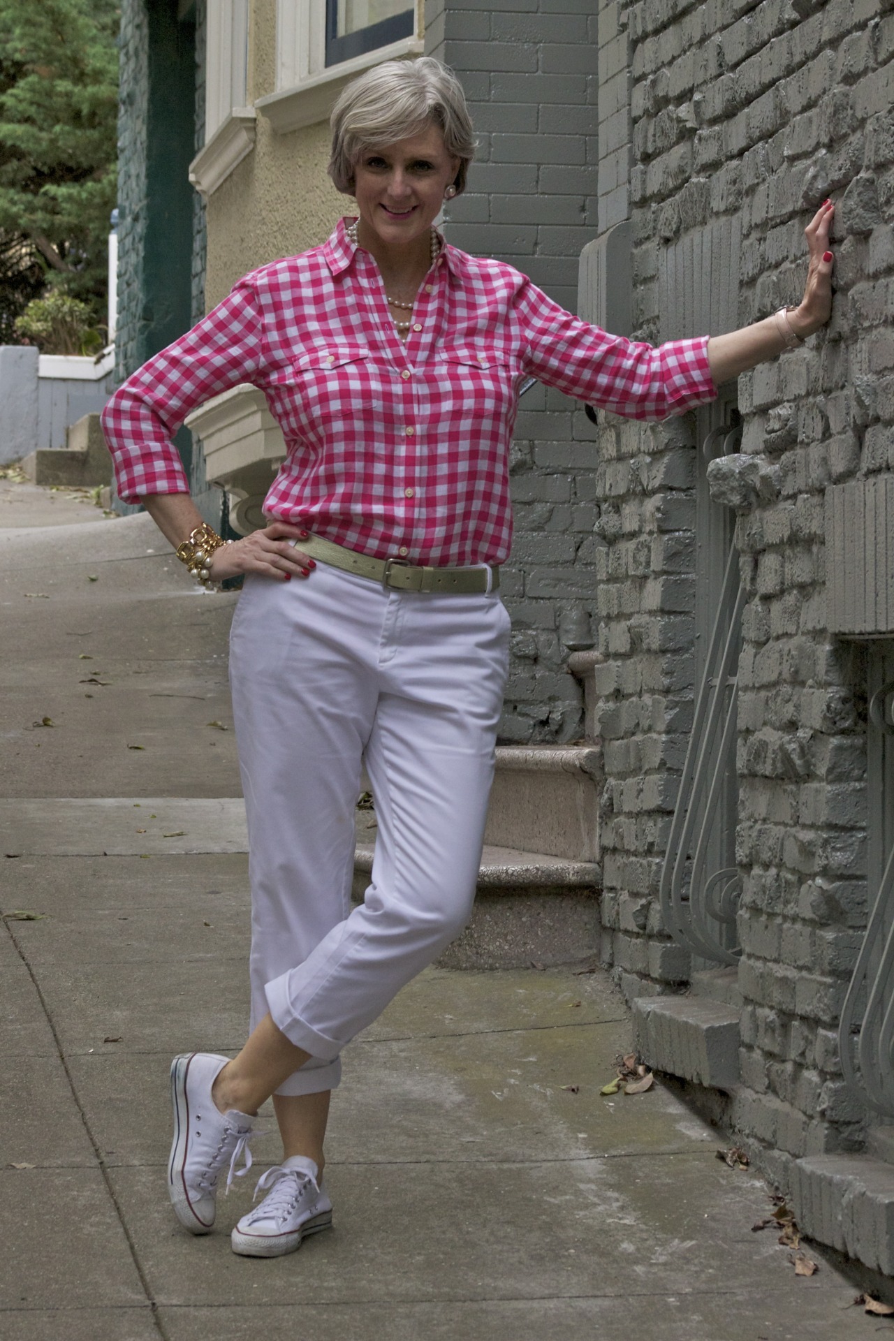 as august quickly fades into fall, i am trying to make use of all of my whites and brights. pink gingham is one of my summertime favorites, especially paired with pearls.