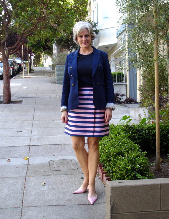 blazer by Banana Republic; skirt by JCrew; tee by JCrew; shoes by Steve Madden