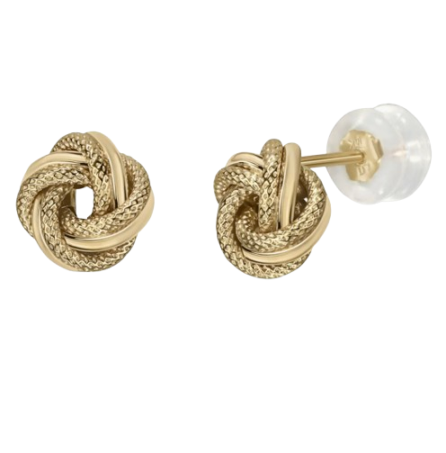 Hammered dots add rich texture to these 14-karat-gold studs fashioned in a knot silhouette.